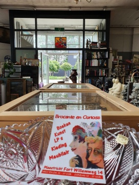 Magazijnverkoop van allerlei brocantespullen zoals boeken, kleinmeubilair, sportfietsen, deurbeslag en meer.