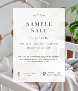 Wat?Sample sale van speelgoed, boxkleden, kleding en meer van het label Baby's Only.