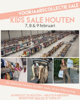 1 van de eerste sales van het nieuwe seizoen is dit keer in Houten! Bij onze Mega grote Kinderkleding SALE met meer dan 40 bekende kindermerken shop je direct met 50% korting of meer! Maat 50 t/m 176 voor jongens en meisjes. Meer dan 60.000 stuks!